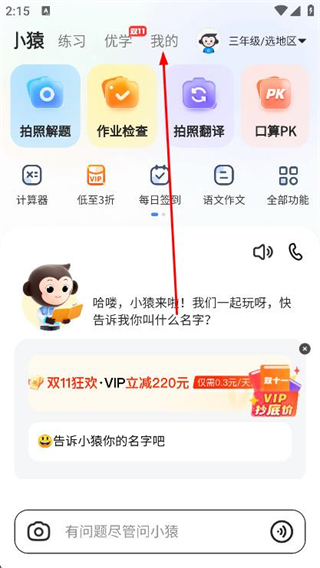 1、打開(kāi)小猿搜題,點(diǎn)擊頂部導(dǎo)航欄我的選項(xiàng)。