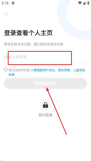 3、在登錄頁(yè)面,輸入手機(jī)號(hào)碼,并獲取驗(yàn)證碼。