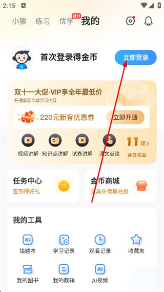 2、在我的頁(yè)面中,點(diǎn)擊上方的立即登錄選項(xiàng)。