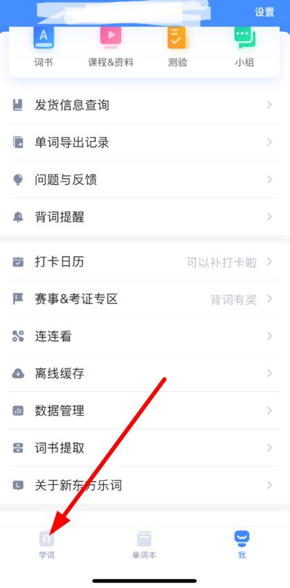1、打開新東方樂詞App,點(diǎn)擊底部導(dǎo)航欄中的學(xué)詞選項(xiàng)。
