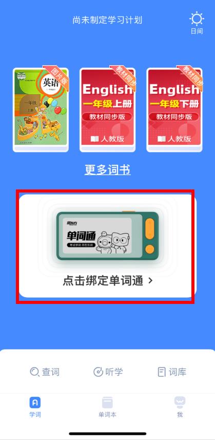 2、在學(xué)詞頁面中,找到并點(diǎn)擊點(diǎn)擊綁定單詞通區(qū)域。