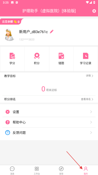 3、進入我的頁面,查看學分、積分、錯題、學習記錄等信息,管理教學目標、積分排名,使用設置、幫助中心、反饋問題功能,優(yōu)化使用體驗。
