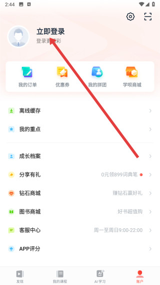 2、在進(jìn)入到我的主頁后,可以點(diǎn)擊上方立即登錄按鈕,進(jìn)行登錄操作。
