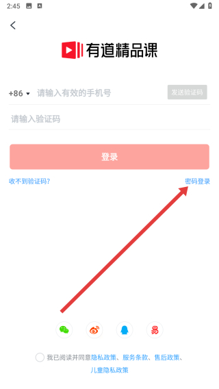3、在進(jìn)入到登錄頁面后,可以點(diǎn)擊密碼登錄按鈕,切換登錄的方式。