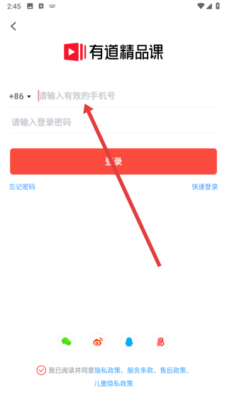 4、切換到密碼登錄頁面中,可點(diǎn)擊輸入框依次輸入手機(jī)號(hào)和密碼后,即可完成登錄。