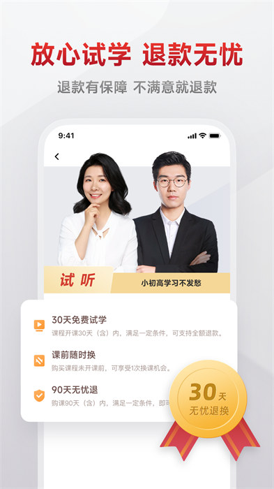 離線緩存,無限次視頻回放隨時(shí)隨地放心聽課;標(biāo)記重點(diǎn),復(fù)習(xí)效率飛速提升;分享課程,好課大家一起學(xué)。