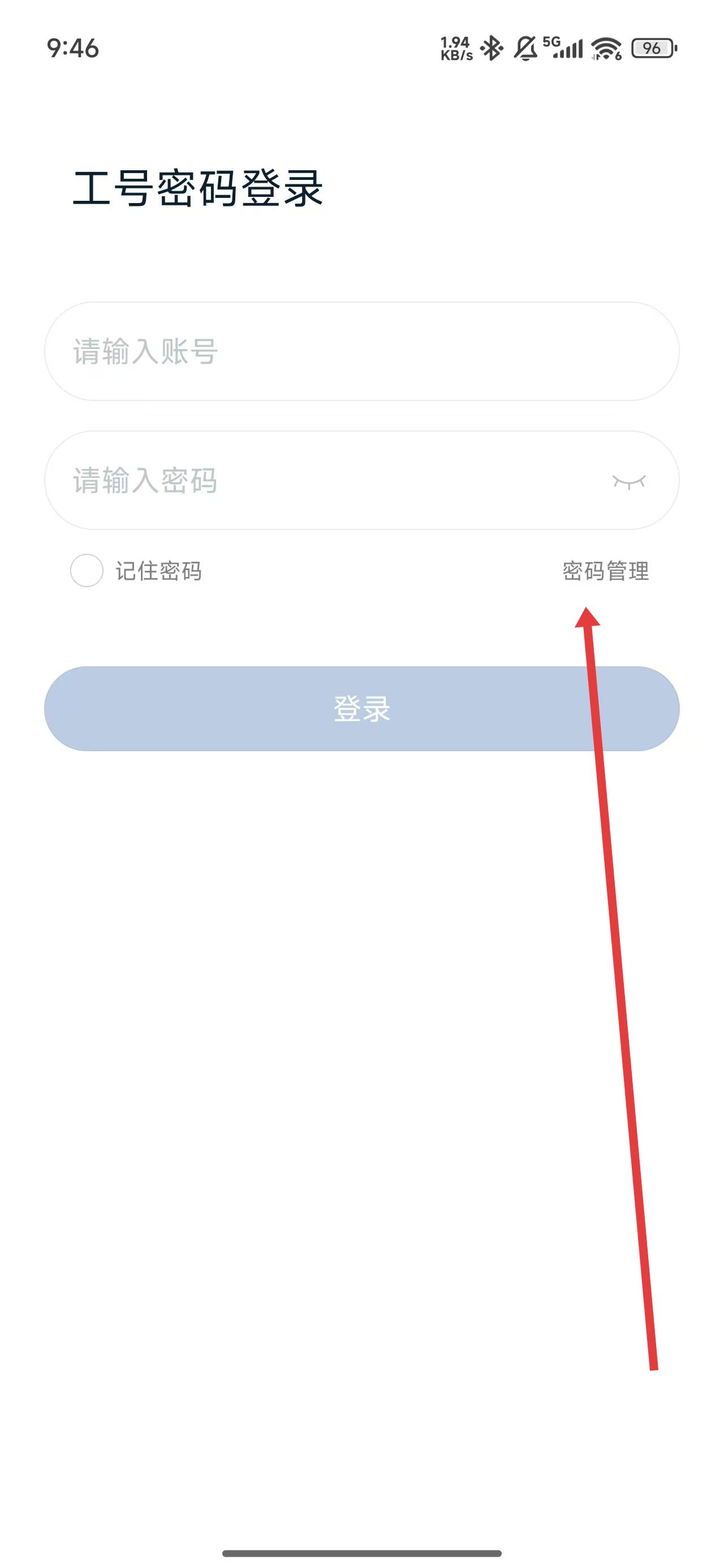 2、在進入到登錄頁面中,若賬號被鎖定無法登錄,可點擊密碼管理解決。