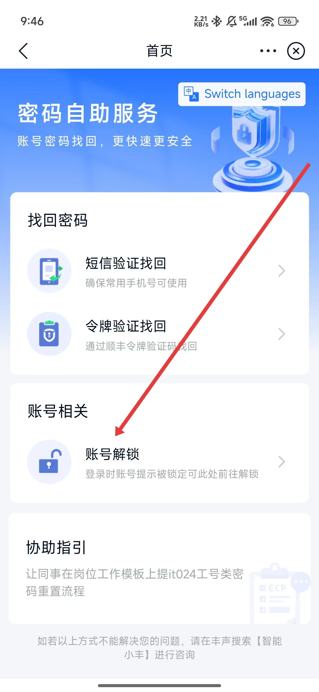3、在進入到首頁頁面中后,可點擊賬號解鎖功能,進行解除操作。