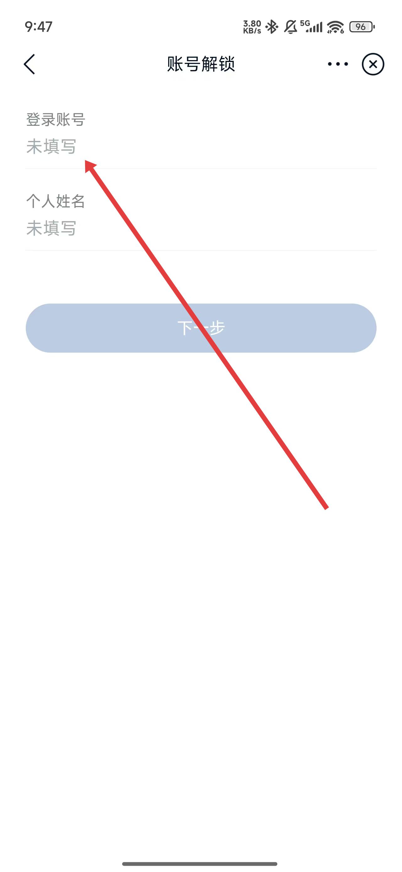 4、在跳轉(zhuǎn)到找回解鎖頁面后,點擊輸入框輸入對應(yīng)信息后完成解除鎖定操作。
