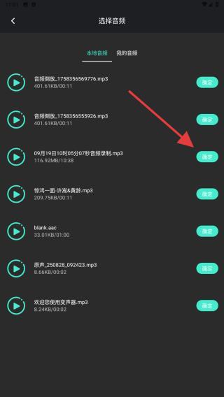 2、在選擇音頻的界面內(nèi),選擇并點(diǎn)擊確定的按鈕。