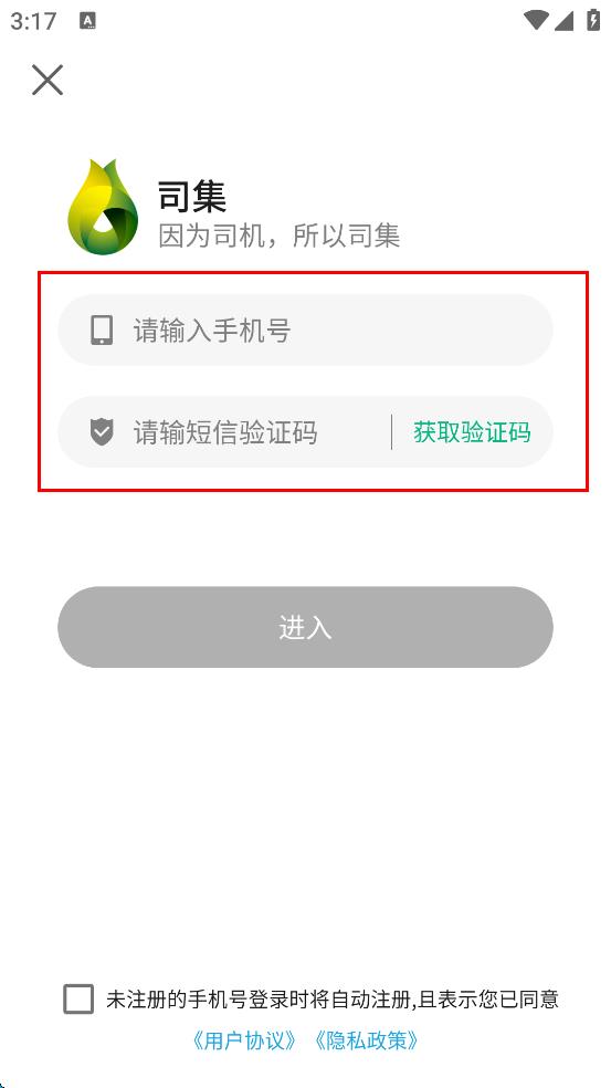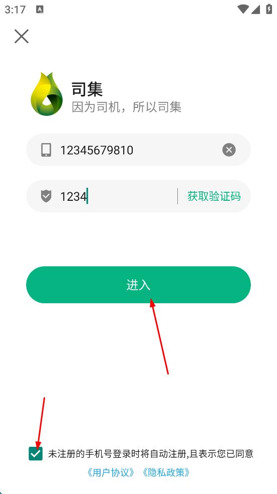 4、勾選未注冊的手機號登錄將自動注冊,且表示您已同意用戶協(xié)議,隱私政策,然后點擊“進(jìn)入”按鈕。