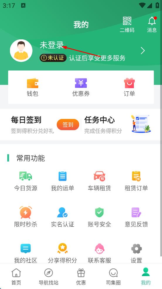 2、在“我的”頁面,點擊“未登錄”區(qū)域。