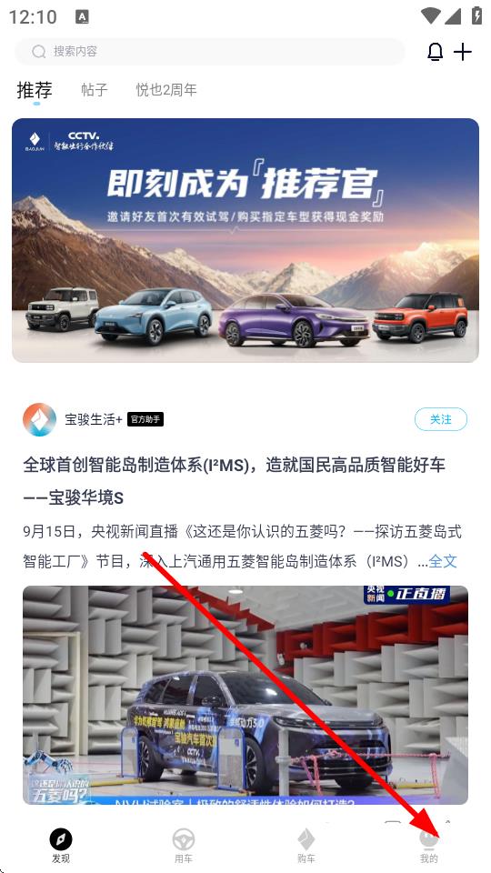 1、打開寶駿APP,在首頁點擊右下角我的選項。