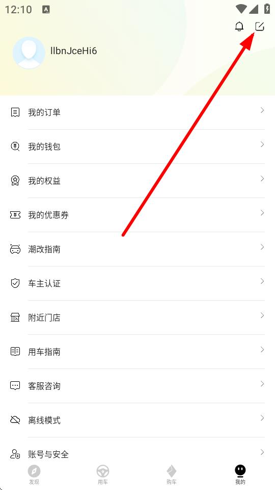 2、進入我的頁面后,點擊右上角的編輯圖標。