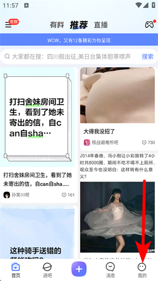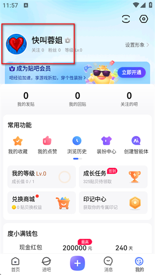 1、打開百度貼吧App,點擊底部導(dǎo)航欄的我的選項,進入個人頁面。