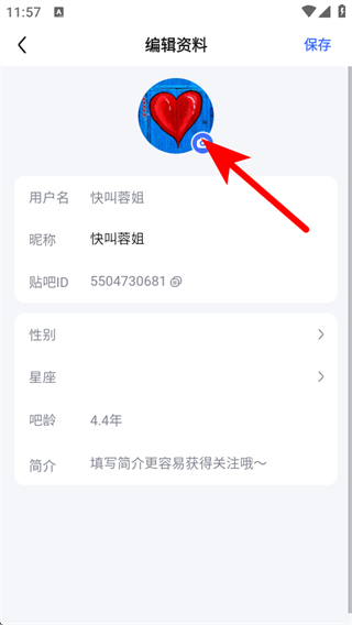 4、在編輯資料頁面,點擊頭像上的編輯圖標,選擇新的頭像圖片,完成更換后點擊保存即可。