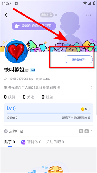 3、在個人主頁中,點擊編輯資料按鈕,進入編輯資料頁面。