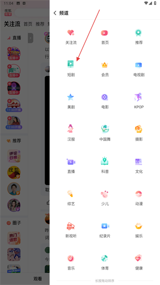 2、在右側(cè)的菜單欄中,用戶需點(diǎn)擊短劇的按鈕。