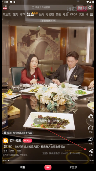 3、進(jìn)入視頻播放的頁面內(nèi),點(diǎn)擊右下分享的功能圖標(biāo)。