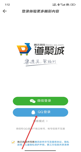 2、在登錄頁面中,點(diǎn)擊QQ登錄按鈕,進(jìn)行登錄操作。
