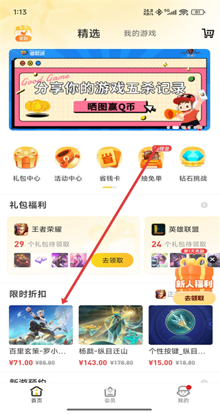 4、可以點(diǎn)擊首頁下方限時(shí)折扣區(qū)域中的皮膚,進(jìn)入查看詳情。