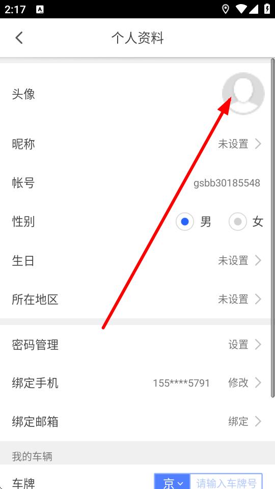3、進入個人信息相關(guān)頁面,點擊頭像欄右側(cè)的頭像圖標(biāo)。