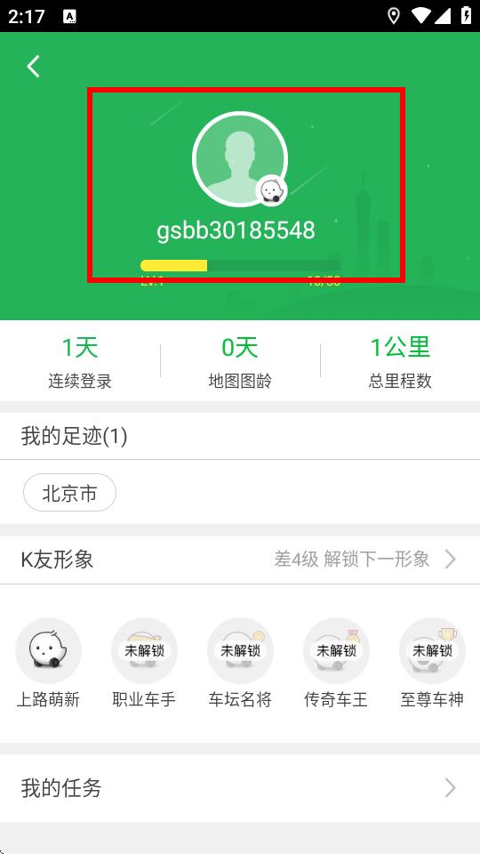2、進入個人中心頁面后,點擊當(dāng)前頭像及昵稱區(qū)域。