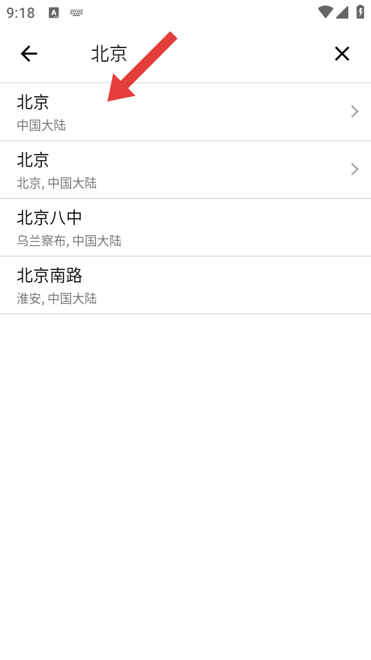 4、在搜索結(jié)果列表中,點擊目標(biāo)城市,即可將該城市添加到在意空氣的地點中。
