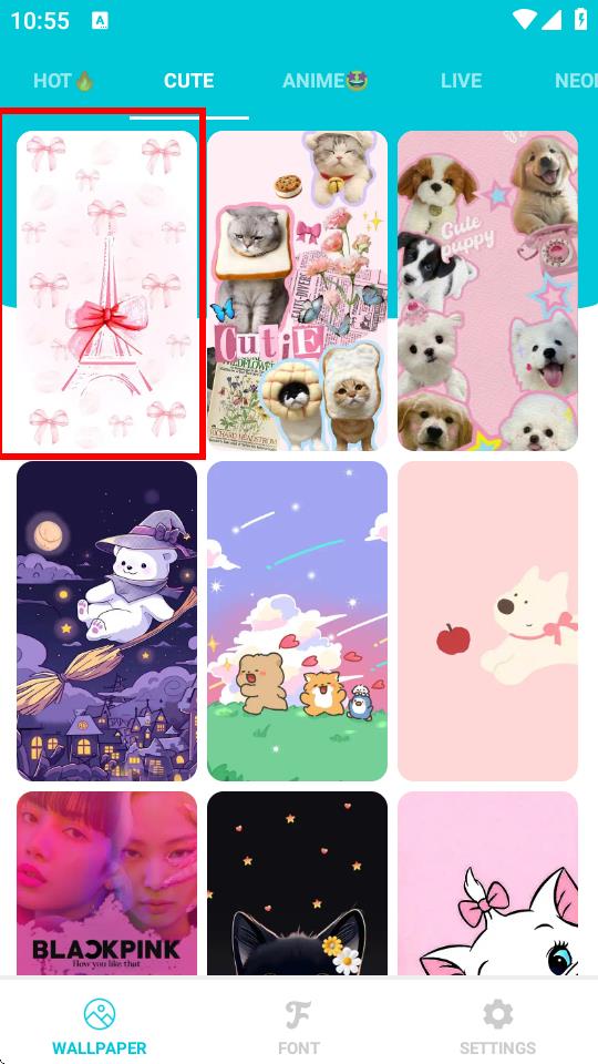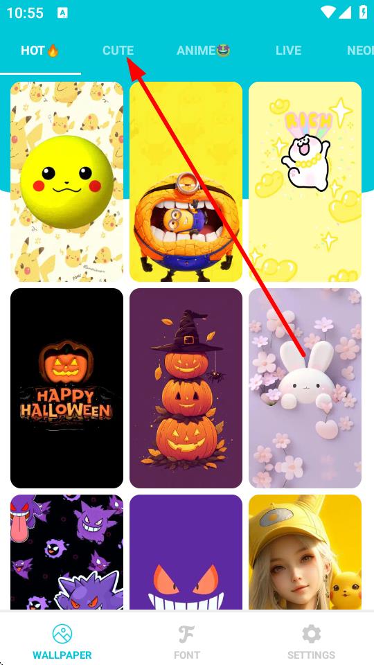 2、在壁紙選擇頁面,點擊上方的CUTE分類標簽,查看可愛風格的壁紙。