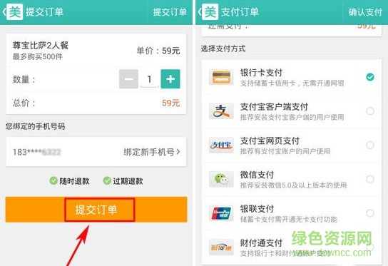 2、進(jìn)入提交訂單界面,點(diǎn)擊“提交訂單”按鍵,最后在支付訂單界面后,按“確定支付”按鍵即可。