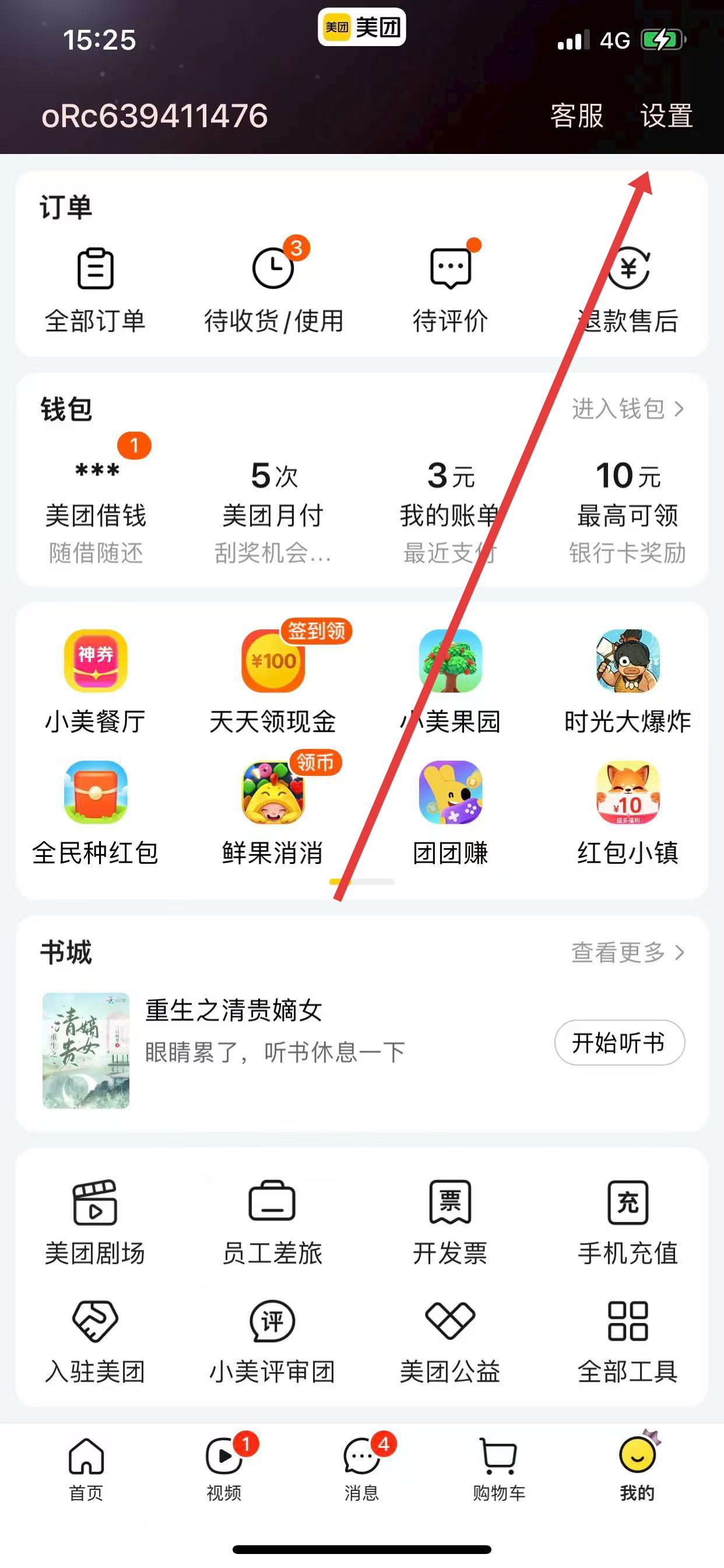 1、打開美團(tuán)APP,點(diǎn)擊右下角「我的」,進(jìn)入個人頁面后,點(diǎn)擊右上角「設(shè)置」選項(xiàng)。