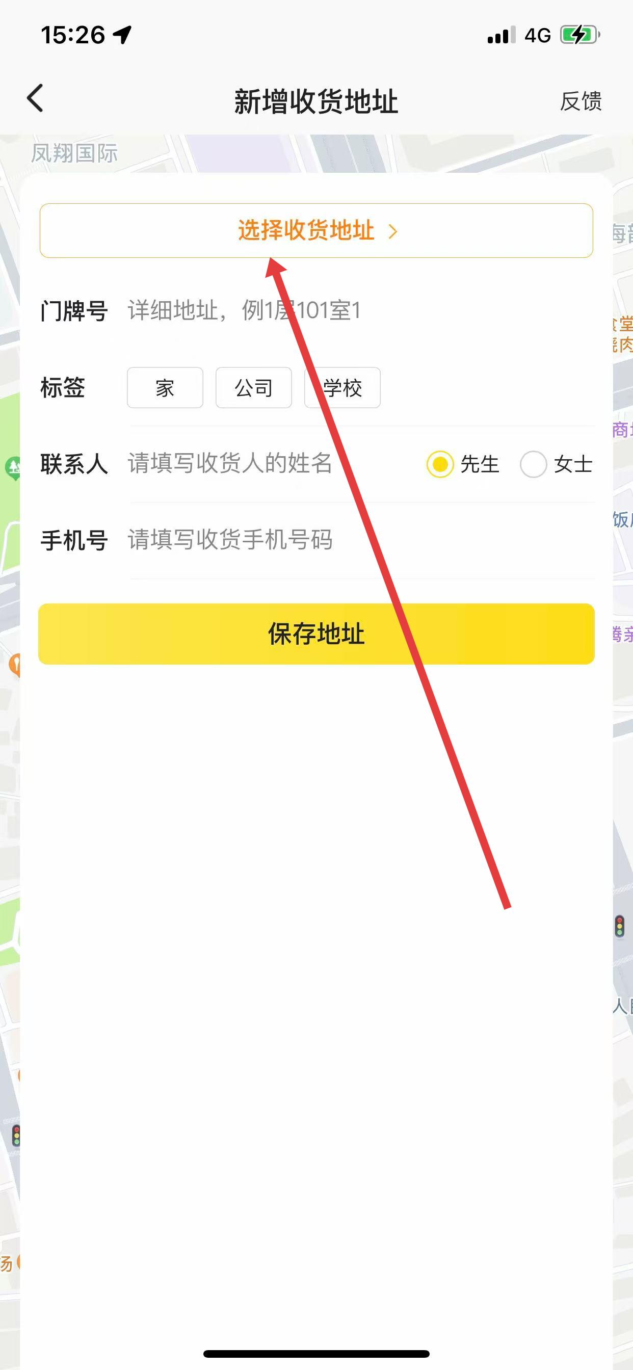 3、如需新增地址,點(diǎn)擊「新增收貨地址」,依次填寫門牌號、選擇地址標(biāo)簽,錄入聯(lián)系人姓名與手機(jī)號,完成后點(diǎn)「保存地址」。