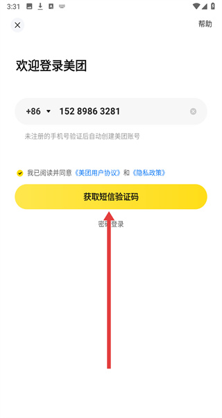 3、進(jìn)入登錄頁面輸入手機(jī)號碼,點(diǎn)擊“獲取短信驗(yàn)證碼”。