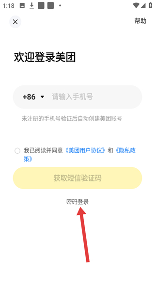 2、在進(jìn)入到登錄頁面中,可以點(diǎn)擊下方密碼登錄按鈕,進(jìn)行切換登錄方式。