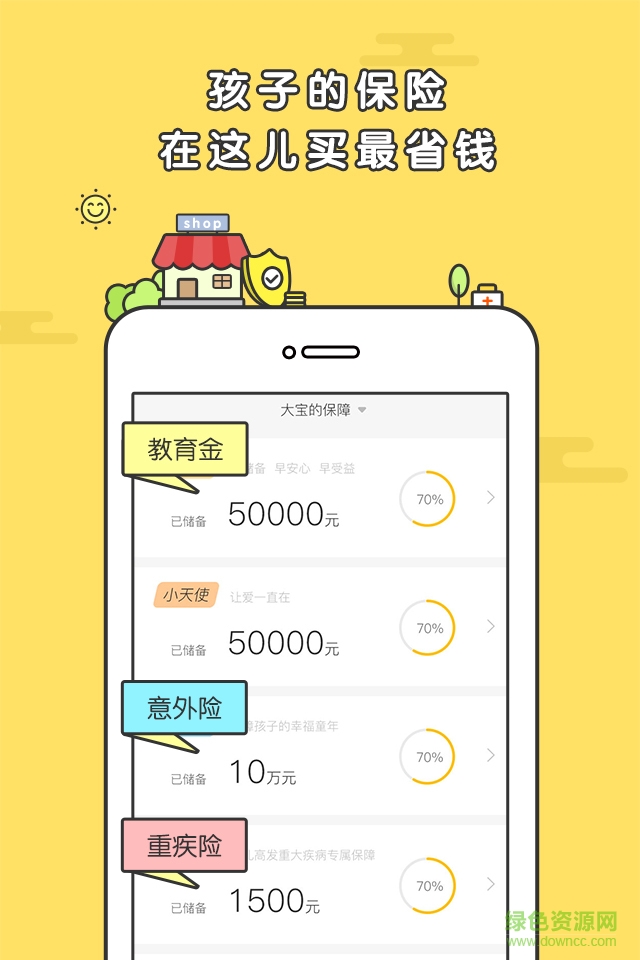 寶貝存錢罐手機(jī)版是一款專注于給寶寶辦理保險(xiǎn)的軟件,有了這款軟件家長就可以不用去銀行辦理保險(xiǎn)了,不會(huì)有繁瑣的程序,直接在網(wǎng)上投保,快捷又方便。孩子的健康安全才是最重要的,所以有需要的給孩子投保的家長可以來綠色資源網(wǎng)下載此款軟件。