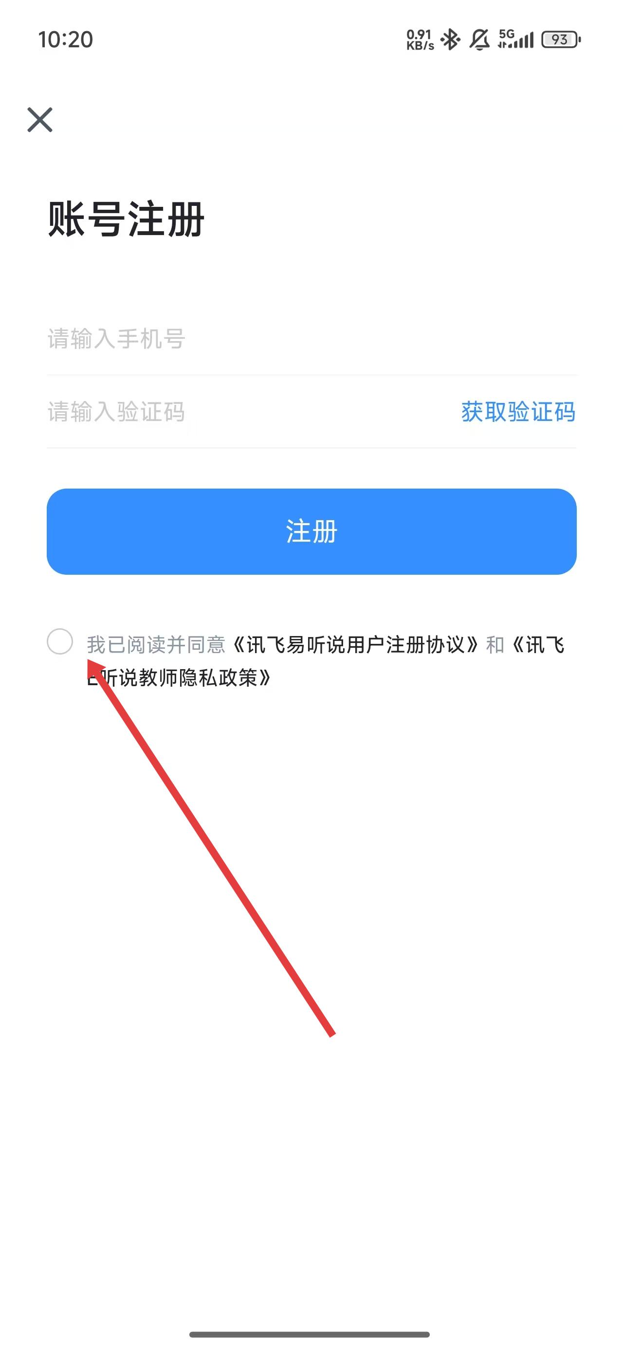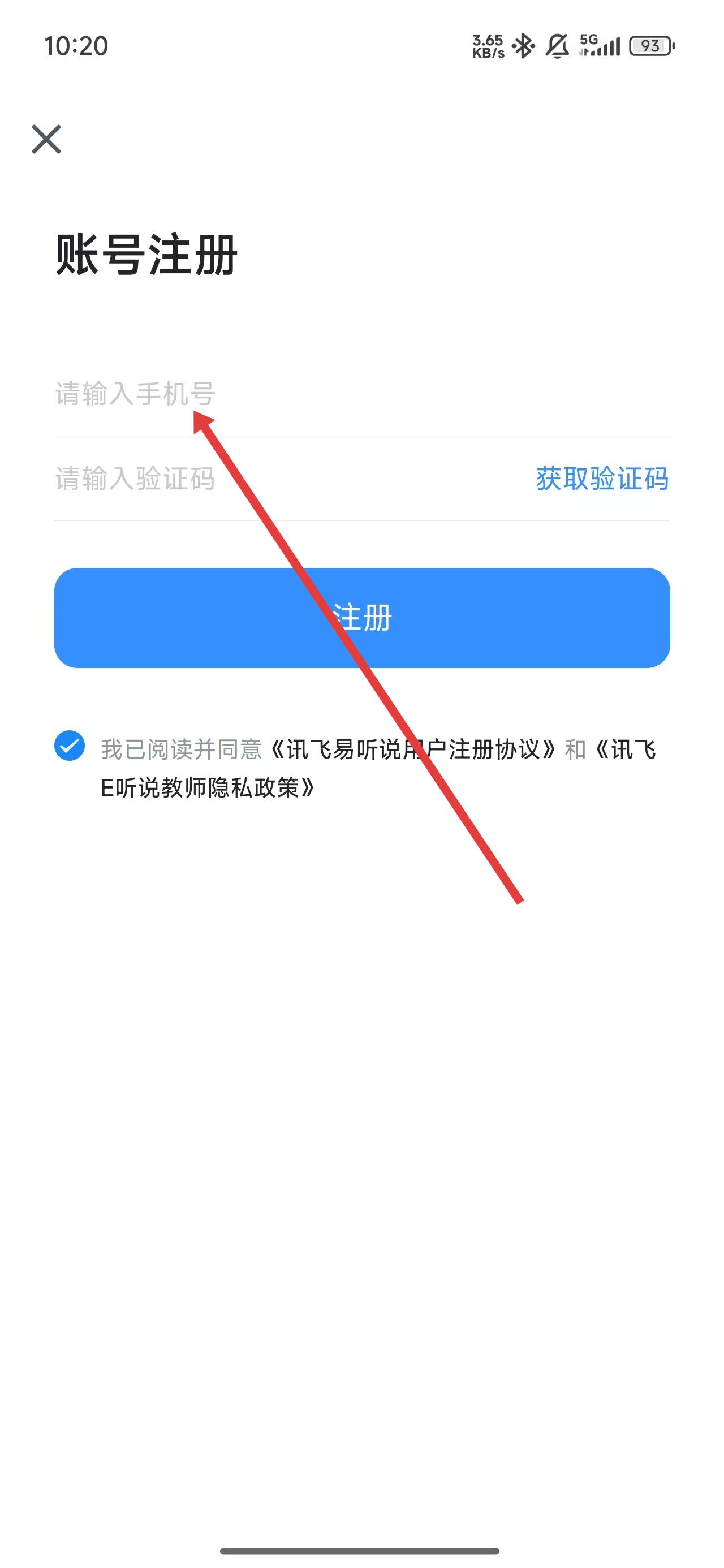 3、在勾選完同意按鈕后,點擊輸入框填寫手機號以便獲取驗證碼。