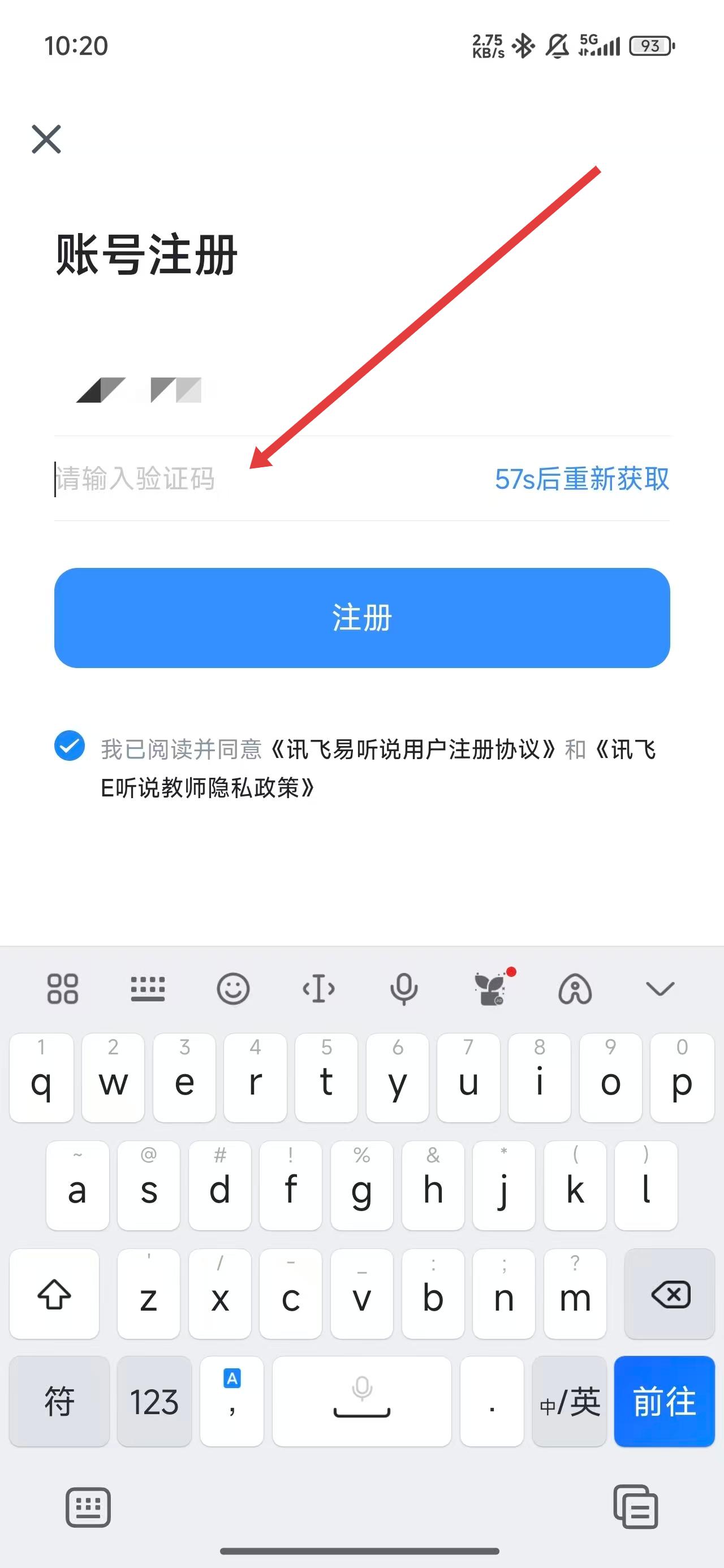 4、在通過手機號獲取到驗證碼后,可以點擊輸入框填寫隨后即可完成注冊操作。