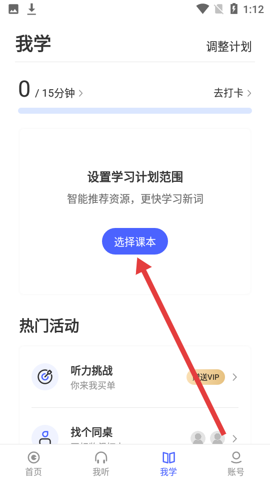 2、在我學頁面里,點擊藍色的選擇課本選項,進入選擇課本。