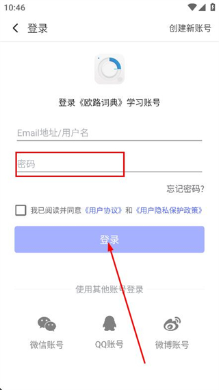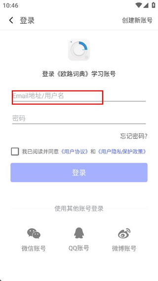3、在登錄頁面,點擊輸入框,輸入Email地址/用戶名。