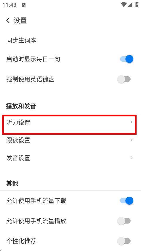 3、在設(shè)置界面中,找到聽(tīng)力設(shè)置選項(xiàng)并點(diǎn)擊進(jìn)入。