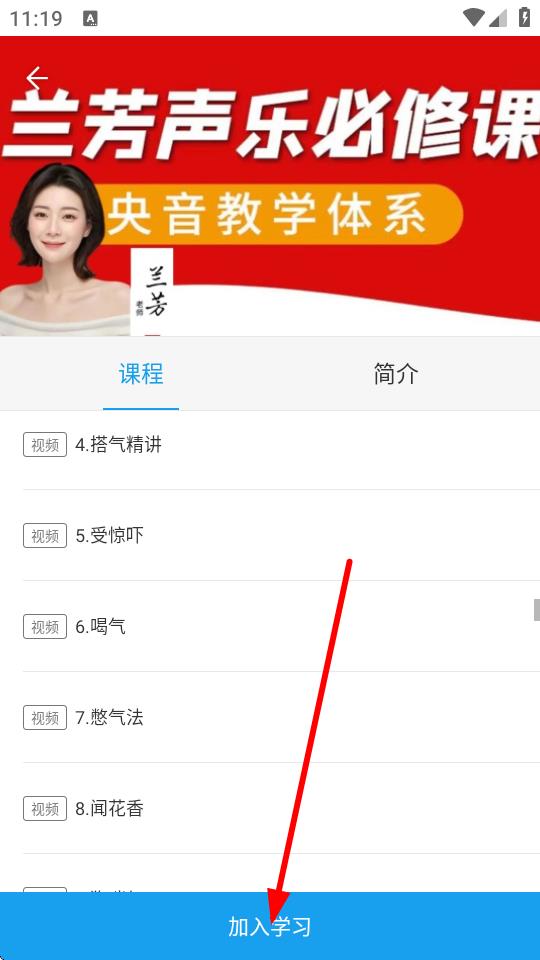 3、在聲樂(lè)課程列表里,找到想要加入的課程并點(diǎn)擊進(jìn)入該課程詳情頁(yè)面。
