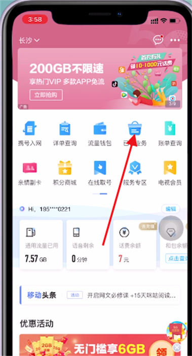 1、將移動軟件打開進入到首頁,在這里能看到很多功能,向后翻到第二頁,查看【已定業(yè)務】;