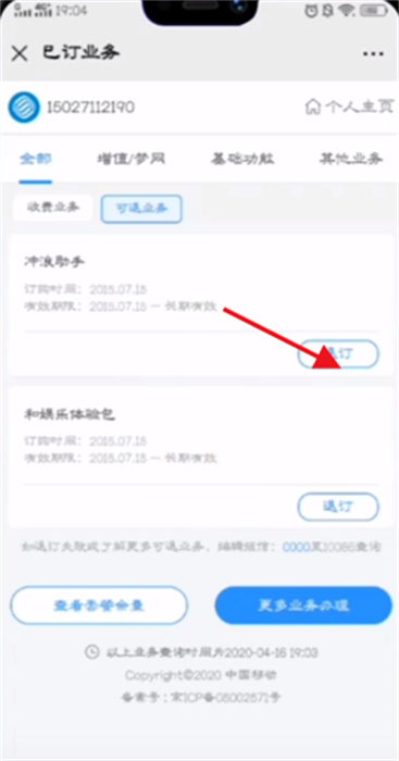 3、接著,跳轉頁面即可看到目前手機卡可以取消的一些業(yè)務,十分的詳細;
