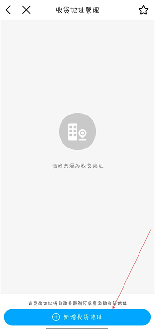 3、進入收貨地址管理界面后,點擊下方的新增收貨地址按鈕。