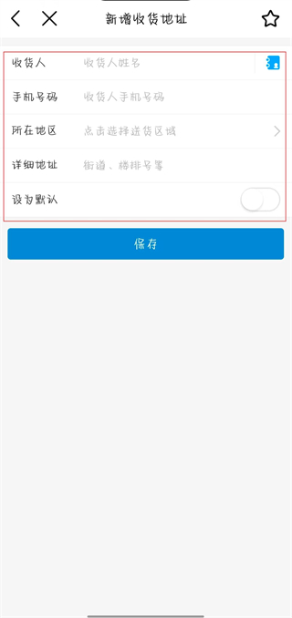4、在新增收貨地址頁面,填寫信息,填寫完畢后點擊保存即可。