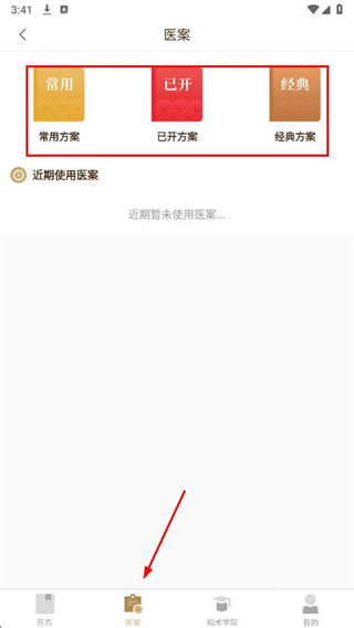 2、設(shè)有常用方案、已開方案、經(jīng)典方案分類,幫助醫(yī)生整理和管理醫(yī)案,查看近期使用醫(yī)案情況。