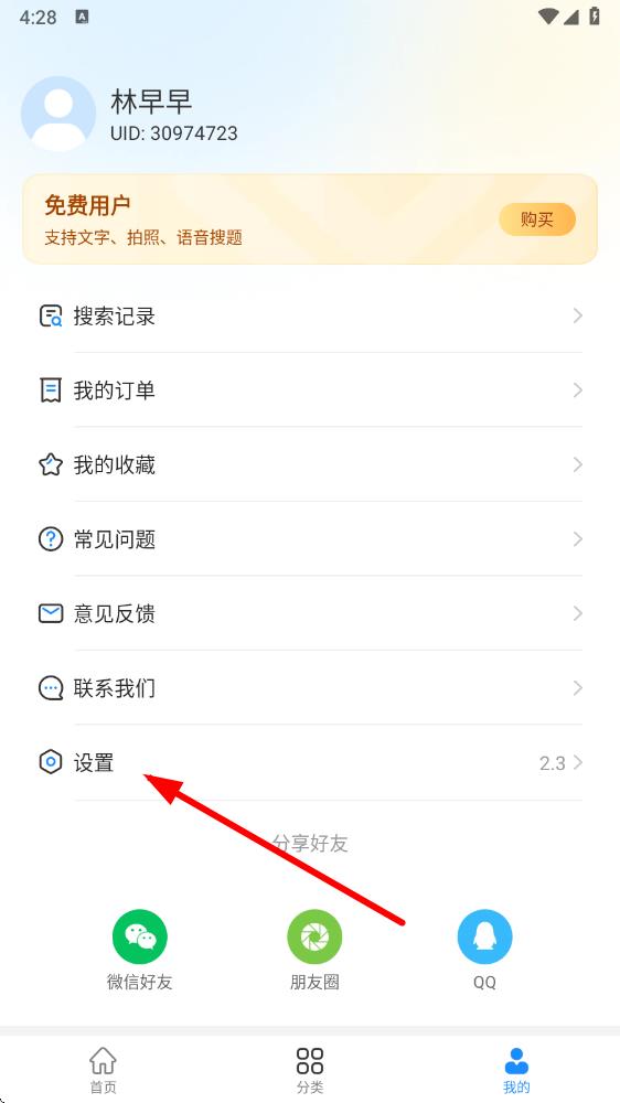 2、在我的頁面中,向下滑動找到并點擊設(shè)置選項,進入設(shè)置界面。
