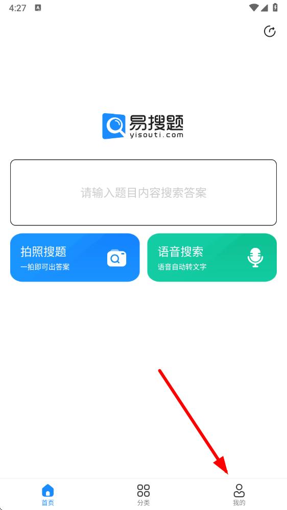 1、打開易搜題app,點擊底部導(dǎo)航欄右下角我的選項,進入個人相關(guān)頁面。