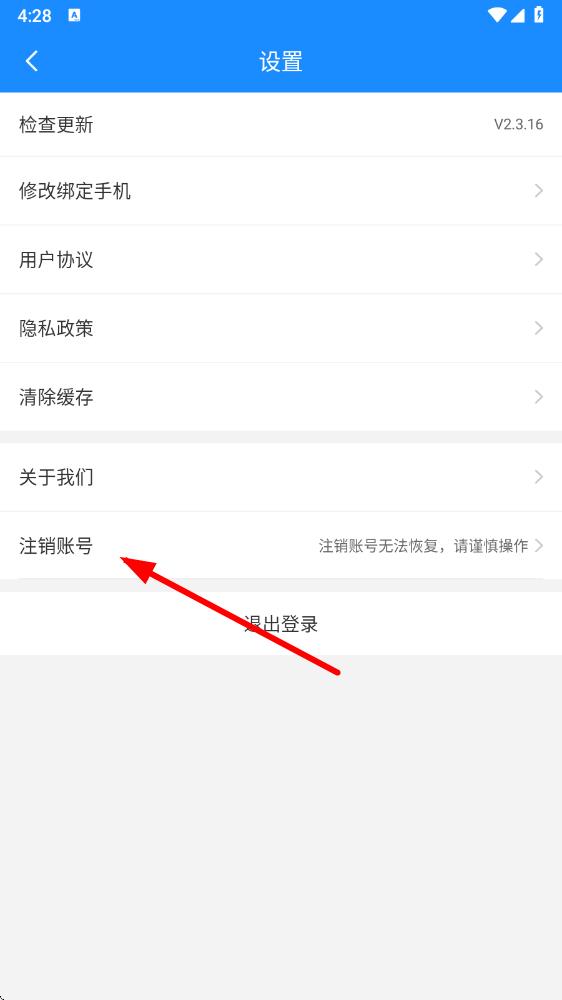 3、在設(shè)置界面里,找到并點擊注銷賬號選項,進入賬號注銷提示頁面。