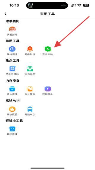 2、進(jìn)入實(shí)用工具的頁(yè)面內(nèi),點(diǎn)擊常用工具中的安全體檢即可跳轉(zhuǎn)至該頁(yè)面。